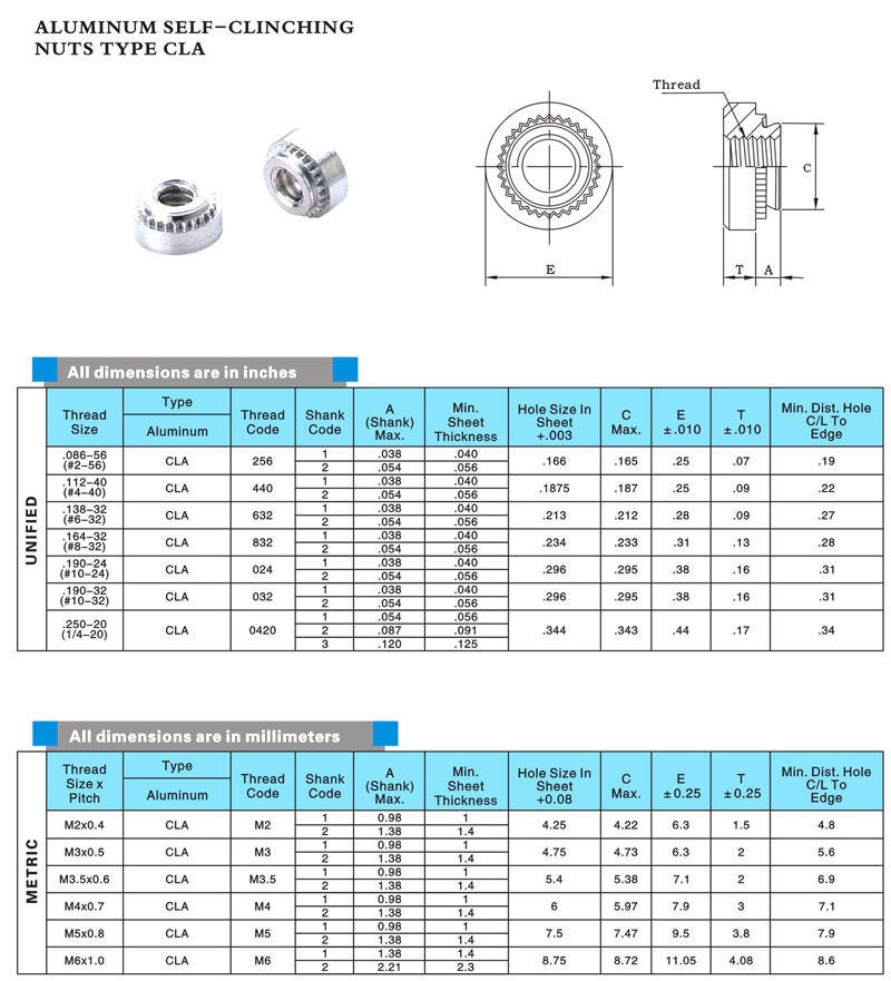采用标准工具能快速、便捷的安装;具有良好的抗拉和抗扭性能;安装不易变形,背面能紧密的怀板面齐平。用于0.8mm以上的板材,螺纹规格:#2到1/2",M2到M10。