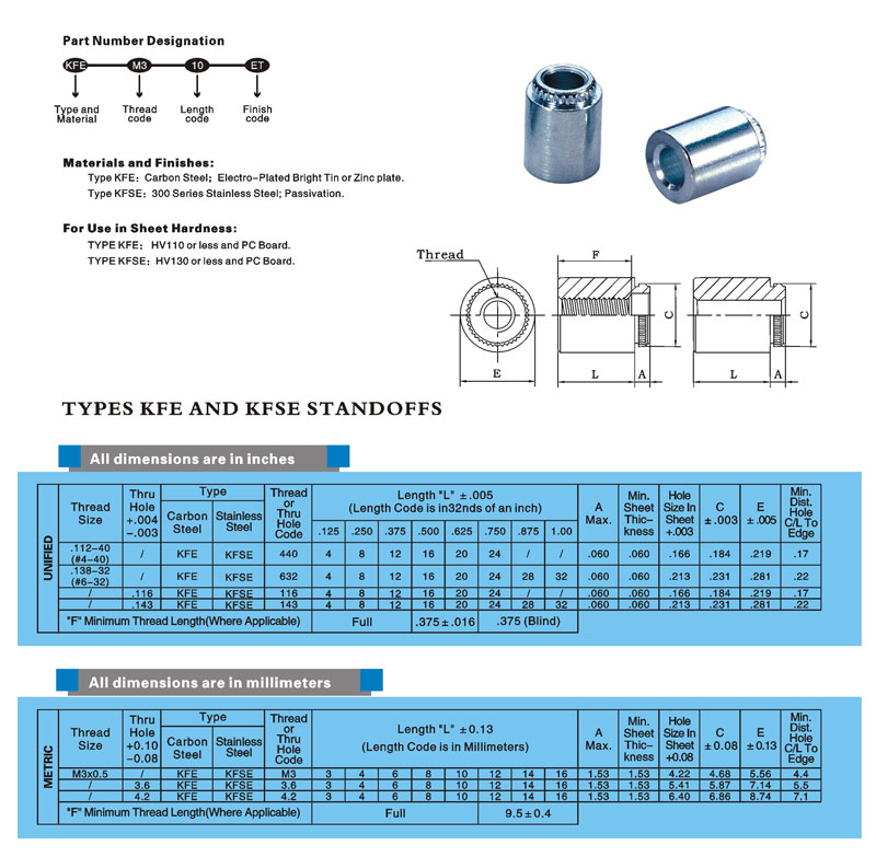 安装于P.C.板上时能使花齿与面板紧密连接.提供有螺纹和无螺纹式,用于装配间隔或叠式P.C.板.螺纹规格:#4到#6和M3.