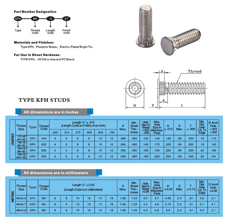 用作软焊连接器,能够保持持久坚固的铆接.螺纹规格:#4到#10和M3到M5.
