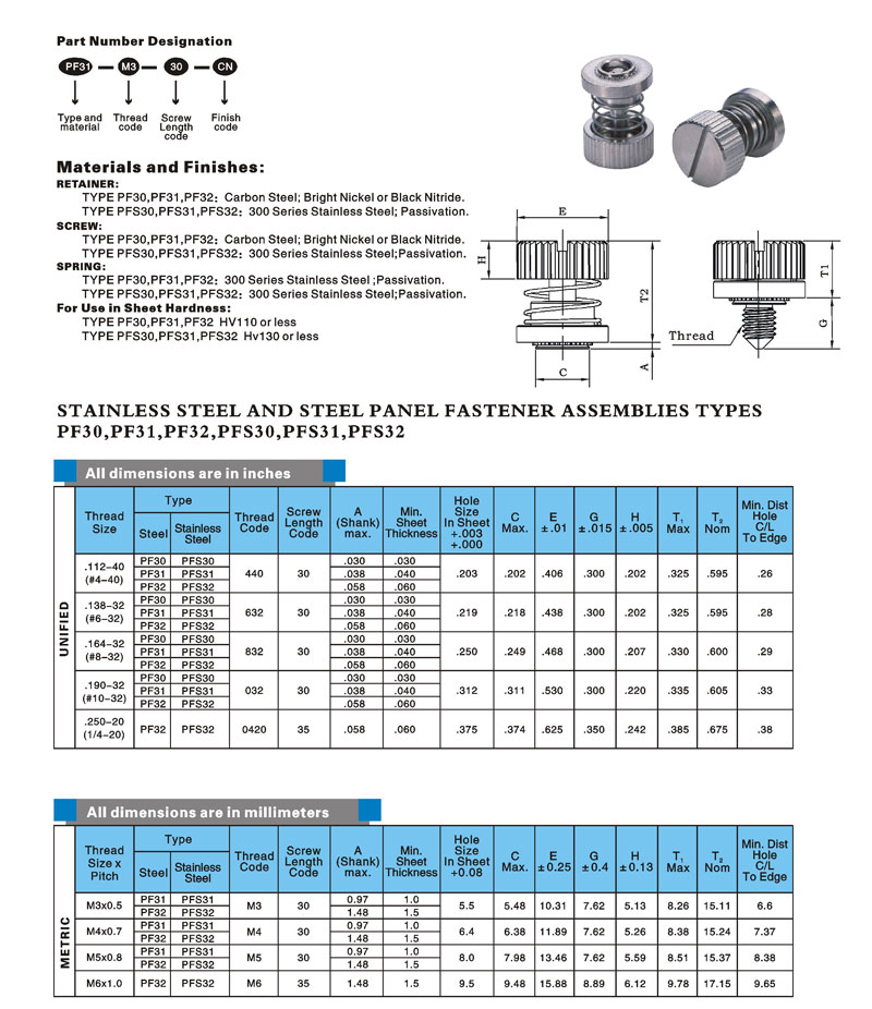 弹簧螺钉 PANEL FASTENER ASSEMBLIES